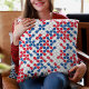 Dieses farbenfrohe, geometrische Kissen weist ein Metaballmuster in Rot, Weiß und Blau auf. Die Farben sind vollständig anpassbar!