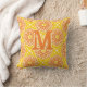 Modernes orangefarbenes gelbes Monogramm-Pilz Kissen