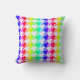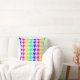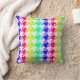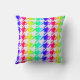 Dieses farbenfrohe Kissen zeichnet sich durch ein weißes geometrisches Hahnentrittmuster über einem Hintergrund mit Regenbogengradienten aus.