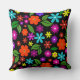 Modernes Retro-florales Schwarz Mitte des Jahrhund Kissen