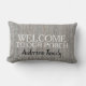 Modernes rustikales graues Leinenmuster Willkommen zu unserem Portalskript, Familienname, lumbales Kissen.