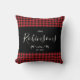 In diesem modernen rustikalen roten Büffel mit kariertem Design, das in der Schriftzeichen-Kalligraphie Ihren Familiennamen trägt, werfen Sie ein Kissen für Ihre Familie.