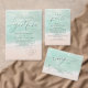 Schöne türkisfarbene abstrakte Aquarell glitzernde Ozeanwelle und Herzen im Hintergrund des Sandstrandes, mit stilvollem Drehbuch und eleganten Serif-Schriftart, modern und einfach. Große Probe-Dinner-Einladungen für Hochzeiten an den Wasserstränden, tropische Hochzeit in Urlaubsort, Hochzeitsfeiern zum Thema Meeresküste im Sommer.