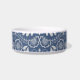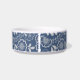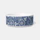 Personalisierte elegante silber und französisch blau Viktorianische Blumenspitze gemusterte Haustierschüssel. Sie können die Hintergrundfarbe und das Namensschild mit einer Farbe Ihrer Wahl anpassen.