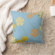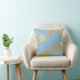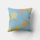 Tropisches Kissen mit hellblauen Hintergrund-, Gelben und OrangeBlumen.