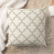 Das quadratische Akzent Kissendesign zeichnet sich durch ein großes, stilvolles grafisches, marokkanisches Vierblattmuster aus. Die Farben sind neutral, Elfenbein und warmes Grau.