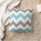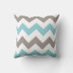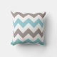 Das moderne Kissen zeichnet sich durch ein gewagtes, Zickzack Muster in Blau, Weiß und Grau aus.