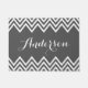 Chic trendy moderne Holzkohle grau und weiß Zickzack Türmatte mit individuellem Monogramm oder Familiennamen. Verschieben Sie Text, fügen Sie Bilder und mehr, indem Sie auf die Schaltfläche IT ANRUFEN klicken.