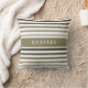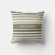 Ein modisches olivgrün-weiß gestreiftes Kissen mit quadratischem Rand. Geben Sie diesem hübschen Schlafzimmerzubehör eine personalisierte Touch, indem Sie Ihren Namen hinzufügen. Dieses großflächige Design aus Streifen sorgt für eine angenehme Raumaufwärmung. Teil der trockenen Kräuterstreifen Schlafzimmerdekoration Winterfarbensammlung.
