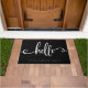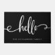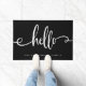 Diese Fußmatte kennzeichnet einen reichen schwarzen Hintergrund und eine moderne weiße Typografie, die "hallo" sagt.