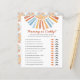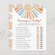 Feiern Sie Ihren kleinen Sonnenstrahl mit diesem Mommy oder Daddy Guess Who Sunshine Baby Shower Game mit einem bezaubernden, gelben, goldenen, orangefarbenen, blauen und pfirsichfarbenen Sonnenschein.