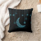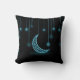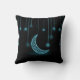 Blauer Mond und Sterne hängen in einem schwarzen Himmel
