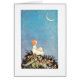 Mondwünsche. Kleines Mädchen, das auf einem blumigen Hügel nachts, den Mond und den sternenklaren Himmel betrachtend sitzt und machen einen Wunsch. Niedliche Vintage Storybookillustration der Reime für Kindly Kinder: Moderne Mutter Gans Jingles, durch Ethel Fairmont, 1916. Künstler: Johnny Gruelle.