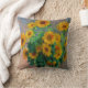 Das Kissen mit Claude Monets Ölgemälde Bouquet von Sonnenblumen (1881). Schöne Sonnenblumen in einer blauen Vase auf einem roten Tisch. Ein großartiges Geschenk für Fans von Impressionismus und französischer Kunst.