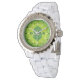 Eine wunderbare Damenuhr mit weißem Armband und grün-weiß-kariertem Ziffernblatt. Trägt sich ganz fabelhaft. Exzellenter Druck, sehr klare Farben. Schönes Design.