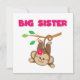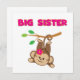 Ein niedlicher Affe mit einer rosa Blume, die von ihrem Schwanz aus einem Ast schwingt, und rosa Text liest "Big Sister" auf großen Schwesterinnen-T - Shirt, Schlüsselketten, Karten, Aufklebern, Totensäcken, Magneten, Mousepads, Kissen und anderen großen Schwesterkleidern und Geschenken!