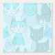 Monochromatic Blue MCM Abstract Cat Pattern Tapete