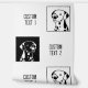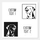 Zwei niedliche gepunktete Hunde, jede in einem Quadrat. Die Hunde sind Spiegelbilder voneinander (d.h. einer ist weiß mit schwarzen Flecken, einer ist schwarz mit weißen Punkten) für ein interessantes monochromes Muster. Es gibt auch einen benutzerdefinierten Text, um dieses Design zu personalisieren.