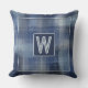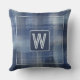 Einzigartiges, künstlerisches Quadrat-Kissen, personalisierbar mit Anfangsbuchstaben, Monogramm. Trendy moderne Bauernhaus ästhetische, Aquarellversion von tartan Büffel kariert Gingham Karo geliebt Design Thema. Monochrome monochrome schöne raffinierte Nuancen von blau, navy, denim blau, grau.. Modernes Bauernhaus, Hütte der Kabine, leicht in jedem Ambiente zu vereinbaren. Eine großartige Akzent-Wohngestaltung für Sie oder eine kreative Geschenkidee.