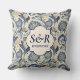 Monogram Blue & Cream Damask Floral Wedding Kissen