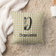 Monogram Blume Retro Gingham Blau Kissen