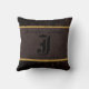 Monogram Dark Brown Rustic Burlap Linen Wood Look Kissen