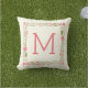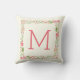 Hübsche Blumenränder in Frühlingsfarben werfen oder werfen Kissen mit schönen Blume in Korallenrosa und Pfirsich, grüne Blätter und Ihr Monogramm in Korallenrosa. Ändern Sie den Text, falls gewünscht.