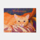 Hübsche, niedliche, leuchtend orangefarbene Katzenjacke Begrüßmatte. Digital gemalt Foto. Helle orangefarbene Katze mit orangefarbenen, braunen Augen. Mischsche aussehende Katze gelegt. Kupfer, Ingwerfarben. Niedliche personalisierte Tür für Katzenliebhaber. Passen Sie Ihren Namen an. Ändern Sie den Stil, die Größe, die Farbe oder entfernen Sie den Schriftart, falls gewünscht. Suchen Sie nach passenden Artikeln in meiner Shop-Sammlung. Das Bild kopiert Marg Seregelyi Fotografie.