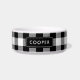 Stilvolle moderne Haustierschale mit rustikalem Schwarz-Weiß-Büffel-Karo-Muster und klassischem Namensmonogramm. Personalisieren Sie es mit dem Namen Ihres Haustieres oder einem anderen Text. Klicken Sie auf Anpassen, um eine beliebige Hintergrundfarbe auszuwählen, Schriftart und Farben zu ändern, eigene Fotos hinzuzufügen und ein Design zu erstellen!