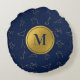 Monogram für Gold & Navy Blue-Zodiac-Konstellation Rundes Kissen