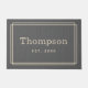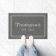 Dieses mit Monogramm Doormat ist einfach und elegant, mit dem Nachnamen Ihrer Familie in ansehnlichen Serifenschrift mit dem unten festgelegten Jahr und einem stilvollen gestreiften Rahmen-Design. Ein wunderschönes Geschenk für Neuvermählte oder neue Hausbesitzer. Enthält eine dunkelgraue Eingrauchdecke mit rustikaler Textur. Die neutralen Farben Grau und Beige der Holzkohle können so verändert werden, dass sie sich mit Ihrer Wohngestaltung abstimmen.