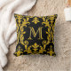 Monogram für Schwarz-Gold-Damask-Wirbel Kissen