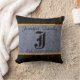 Monogram graue Rustikale Burlap Linen Wood Look Kissen