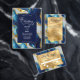 Eine Serviette mit goldfarbenem, blau-weißem Marmor in den Imitaten.