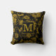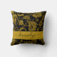 Auf einem schwarzen Hintergrund ist ein goldfarbenes Damast-Kissen mit kleinem Damast zu werfen. Personalisieren Sie mit Ihrem Monogramm Initial- und Familiennamen, um es zu einem exklusiven Keepake-Kopfkissen zu machen. Ein elegantes Geschenk für den Haushalt und Urlaub.