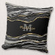 Monogram Name Black Marble Agate Gold Glitzer Kissen