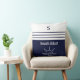 Monogram Navy Blue Stripes Nautical Beach House Kissen