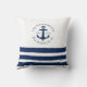 Gestalten Sie ein stilvolles personalisiertes nautisches Dekor in Weiß- und Marineblau mit gestreiftem Muster, Anker und Vorlagentext für Ihren Familiennamen, Ort, Jahr oder andere Redewendungen.