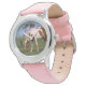 Kinderuhr aus Edelstahl mit rosa Lederarmband