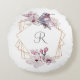 Monogram Pink White Magnolias Bird Gold Frame Rundes Kissen