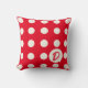 Monogram Polka Dots in Weiß auf Hellrot Kissen