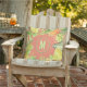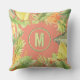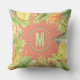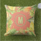 Stilvolle Outdoor-Stoffkissen mit Monogramm, umgeben von tropischen Aquarellfarben, Obst und Blätter auf korallenrosa Hintergrund, oder jeder beliebigen Farbe, die Sie wählen. PASSENDE Artikel in unserem Geschäft.