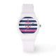 Navy blaue und weiße Streifen mit einem rosa Anker und Raum für Personalisierung.