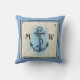 Monogramm-Anker-Vintager blauer Seekompaß Kissen