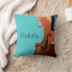 Monogram Geigenwurfkissen, mit einem gebeutelten Geigenbild auf aquamarinem Hintergrund, mit schwarzer Schrift können Sie mit Ihrem eigenen Text personalisieren. Viel Spaß!