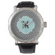 Diese schlichte und stilvolle Monogramm-Armbanduhr aus schwarzem und weißem Streifen ist das perfekte Zubehör für jedes Outfit. Passen Sie das "M" auf Ihren Namen an. Gute Geschenkidee für jeden.
