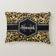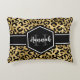 Chic goldfarbenes und schwarzes Leopardenkissen mit individuelle Name und Monogramm-Vorlage. Ein niedlicher und trendiger Safari-Tiermuster-Hintergrund, der mit einem eigenen Stück Personalisierung überragt wird.