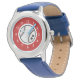 Kinderuhr aus Edelstahl mit blauem Lederarmband