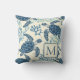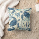 Dieses wunderschöne mit Monogramm Kissen besticht durch ein inspiriertes Küstenbild von Meeresschildkröten und Korallen in Blau- und Cremetönen. Personalisieren Sie das Monogramm mit Ihrer Wahl des Initials.