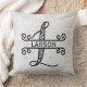 Schwarzer Monogramm Buchstabe "L" mit dem Familiennamen auf einem Birkenbaum strukturierten Hintergrund. Name ist bearbeitbar. Der Hintergrund kann geändert werden.